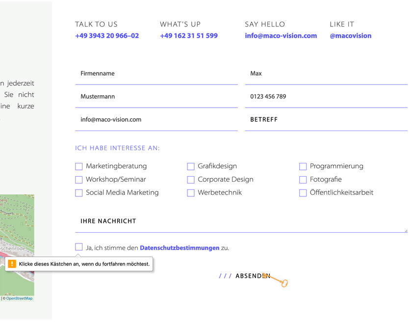 Kennzeichnen Sie Pflichtfelder zum Beispiel mit einem Stern-Symbol.
