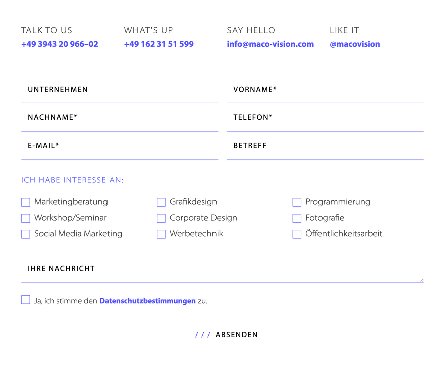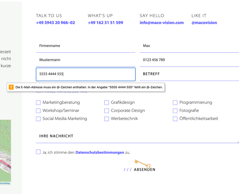 Verwenden Sie verständliche und allgemein übliche Bezeichnungen für die Formularfelder, welche links oder oberhalb eines Feldes stehen sollten.