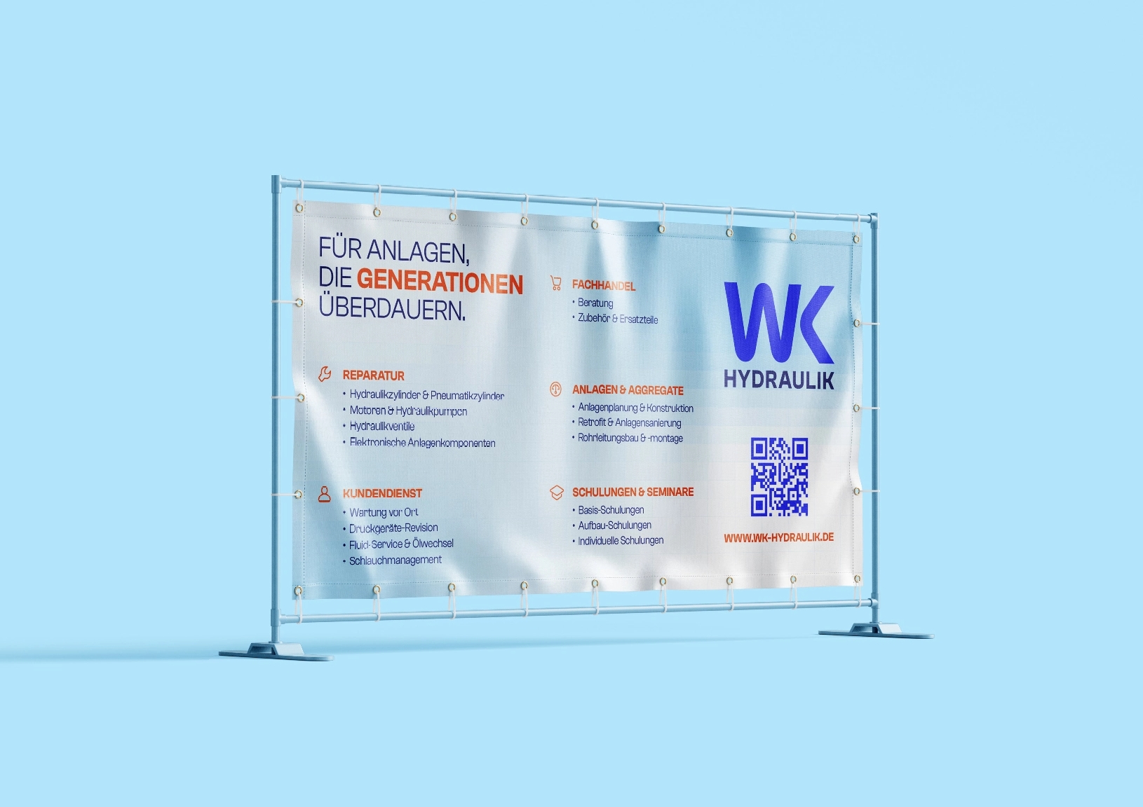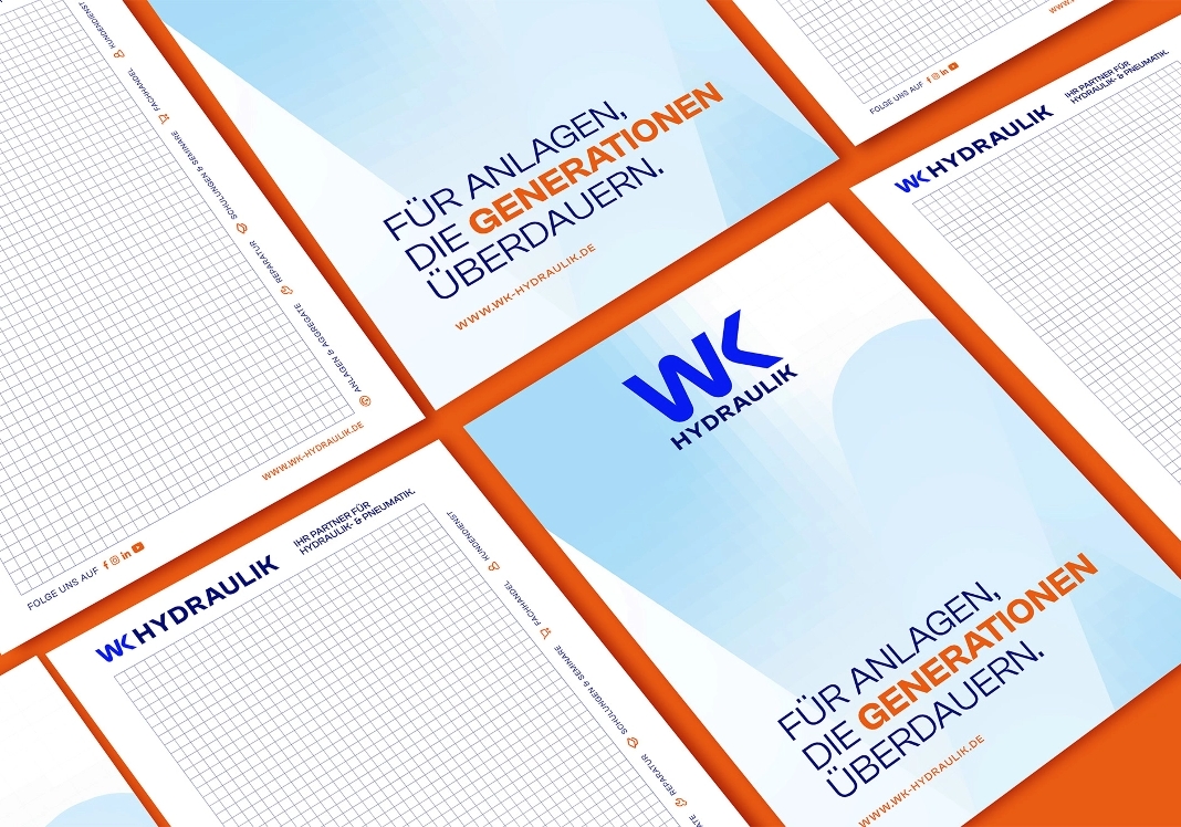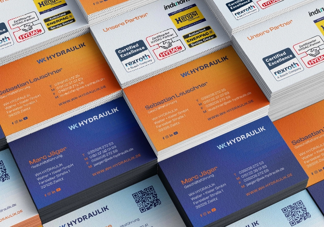 Im Zuge des Relaunchs des Corporate Designs haben wir sämtliche Printprodukte überarbeitet. Von Geschäftsmitteln über Außenwerbung bis hin zu Werbemitteln erstrahlt alles in den neuen, auffälligen Farben von WK Hydraulik. Die einheitliche Gestaltung stärkt das Gesamtbild des Unternehmens und betont seine Professionalität nach außen, weswegen wir auf die Wiedererkennung und Modernität einen besonderen Fokus legen. Entdecken Sie, wie sehr sich der neue Stil abhebt – sehen Sie sich jetzt den direkten Vorher/Nachher-Vergleich an!