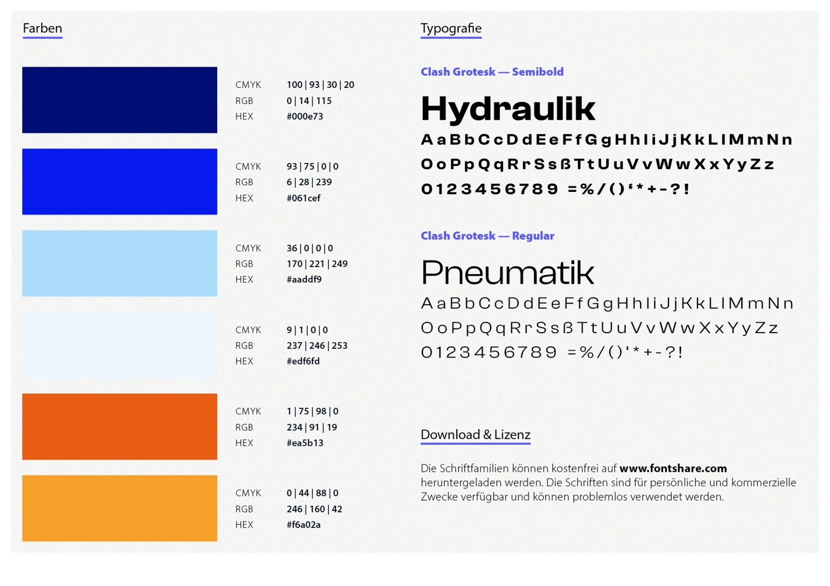 Um die Wiedererkennbarkeit des Unternehmens zu gewährleisten, bewegt sich das neue Corporate Design wieder im blauen Farbbereich. Es wurden frischere Blautöne verwendet, die im Zusammenspiel mit einem Orange als Akzentfarbe Aufmerksamkeit erregen und sich klar von den Farbgebungen der Konkurrenten abheben.